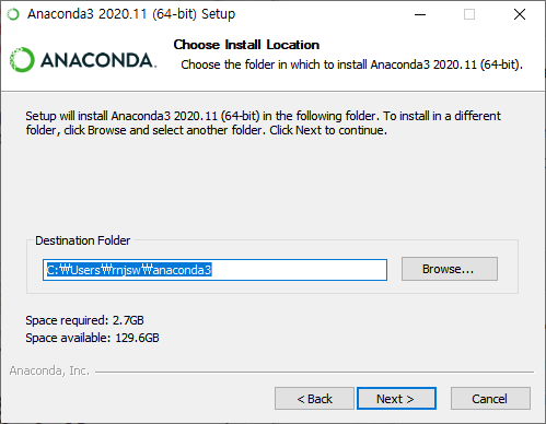 자 그리고 여기서 주의해야 될 점이 있습니다! 파일 설치 경로에는 한글이 들어가면 안 됩니다. 파이썬 라이브러리의 호환성 문제 때문에 한글이 들어가게 된다면 에러가 발생합니다.