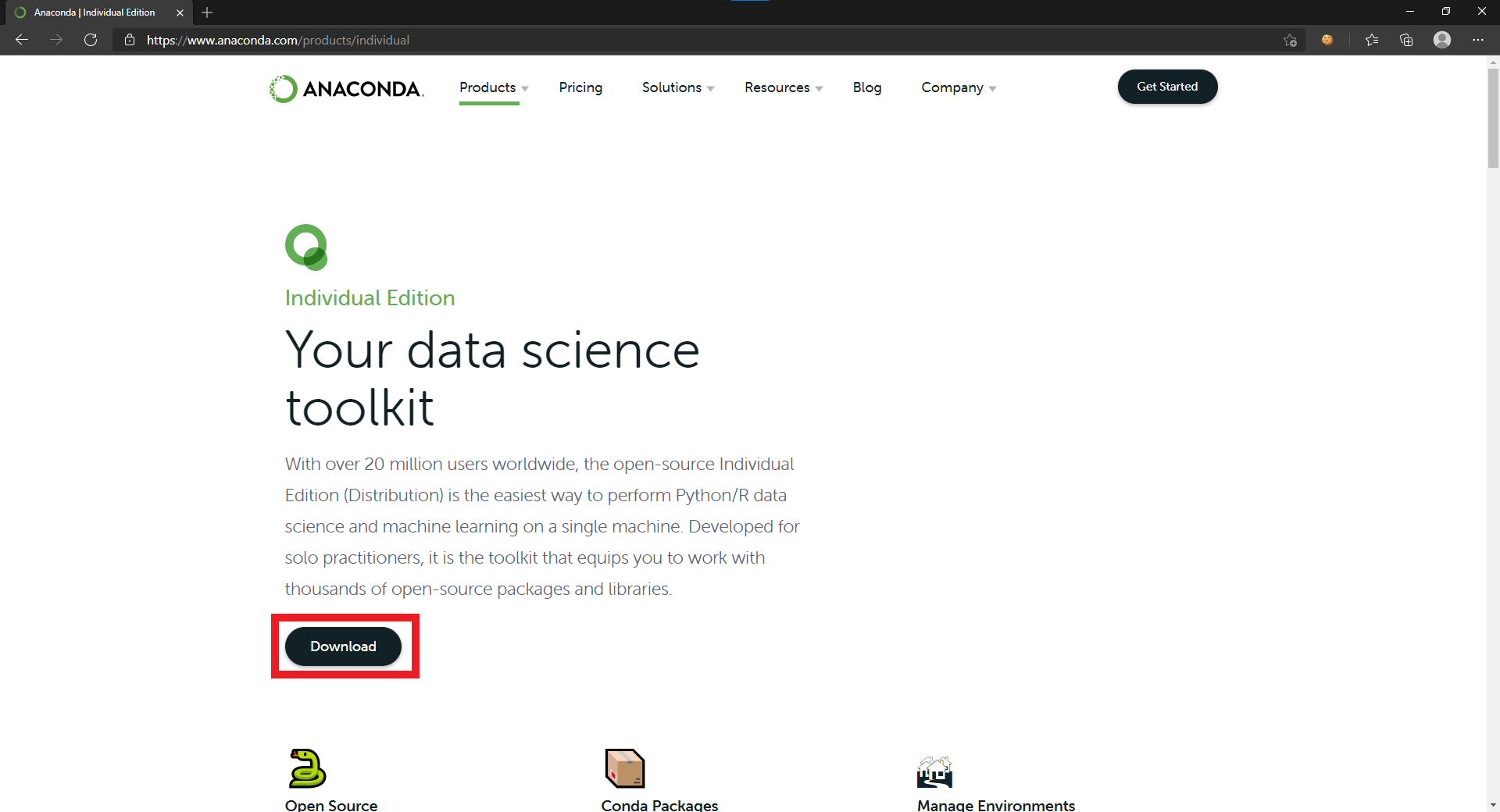 먼저, 아나콘다 공식 사이트로 이동해줍니다.