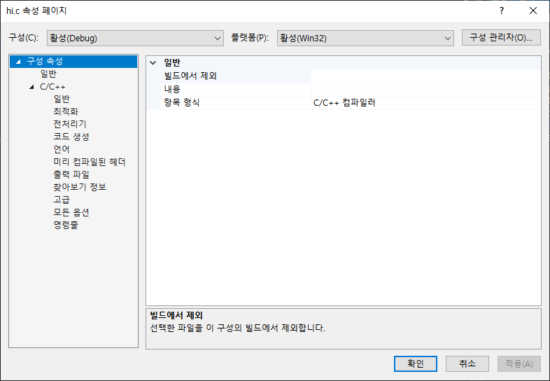 구성 속성 -> C/C++ -> 일반 탭을 눌러줍니다.