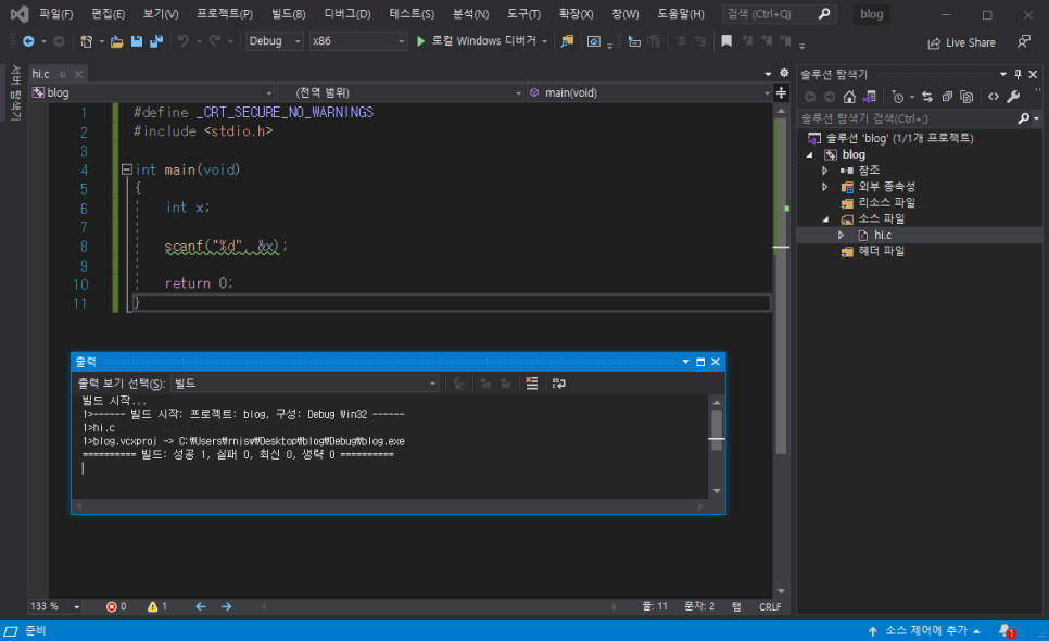 scanf 오류가 나는 이유가 보안 문제인데 보안 검사를 꺼버리면 scanf 오류도 사라집니다.