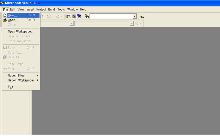 우선 저는 Microsoft Visual C++ 6.0 을 사용하고 있습니다.(컴퓨터에 6.0이 설치되어 있는 관계로^^;)