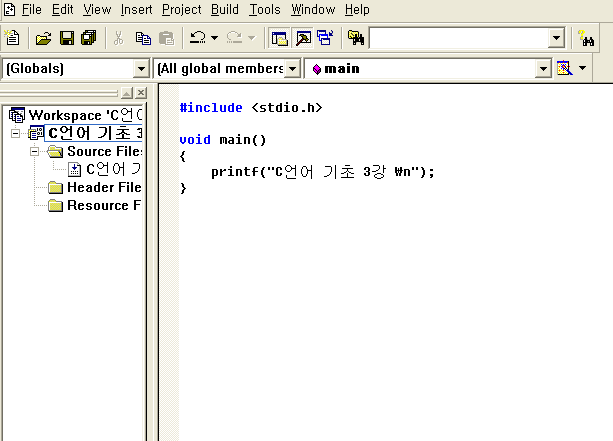 앞의 'C언어 기초 2강'의 코드를 그대로 쳐보도록 하겠습니다.