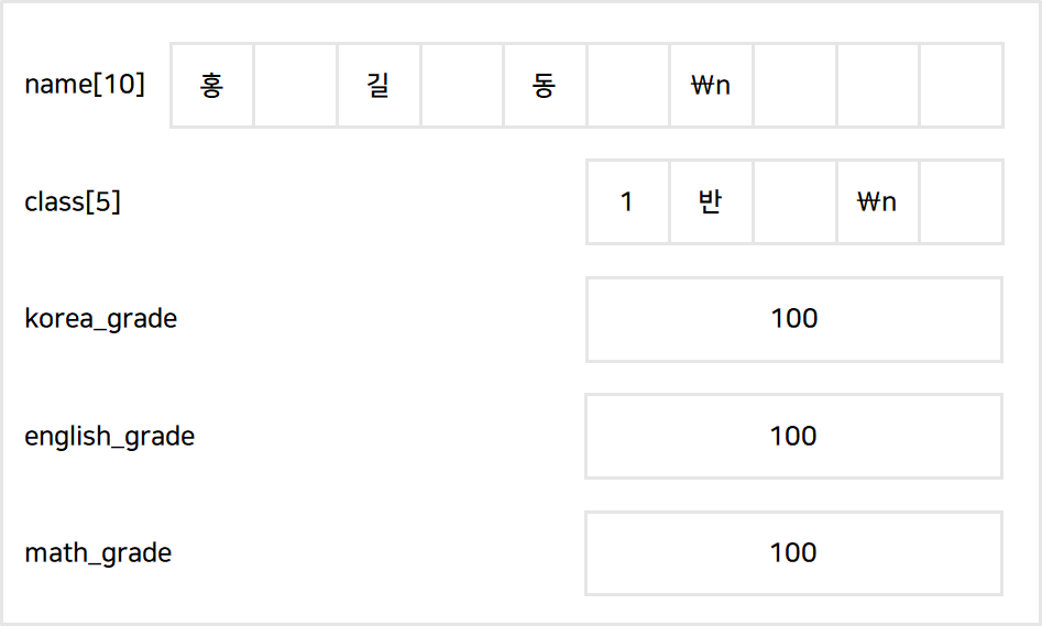 그림으로 만들어보면 구조체는 다음과 같은 형태를 띠겠죠?
